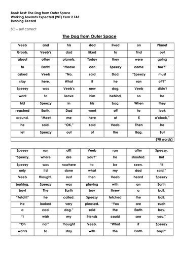 Year 2 Reading Moderation Working Towads The Dog From Outer Space Running Record Teaching Resources